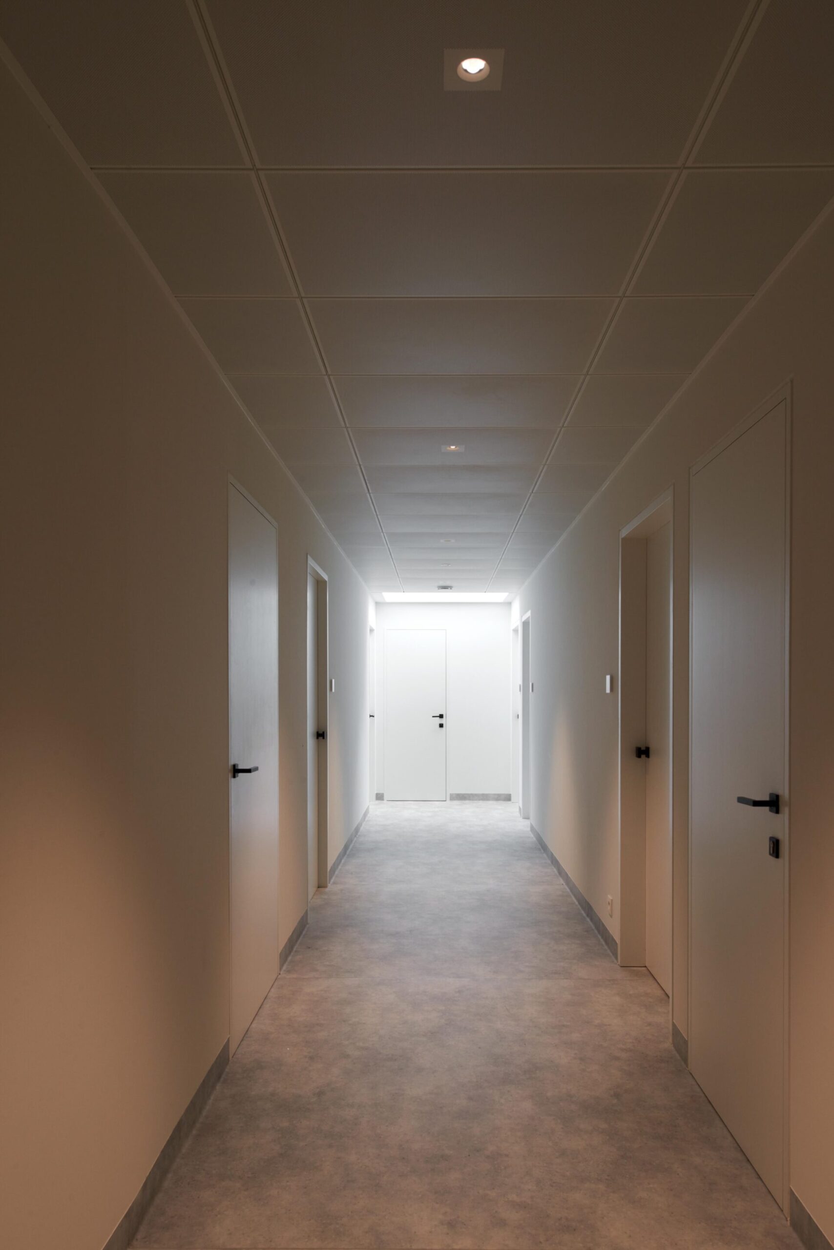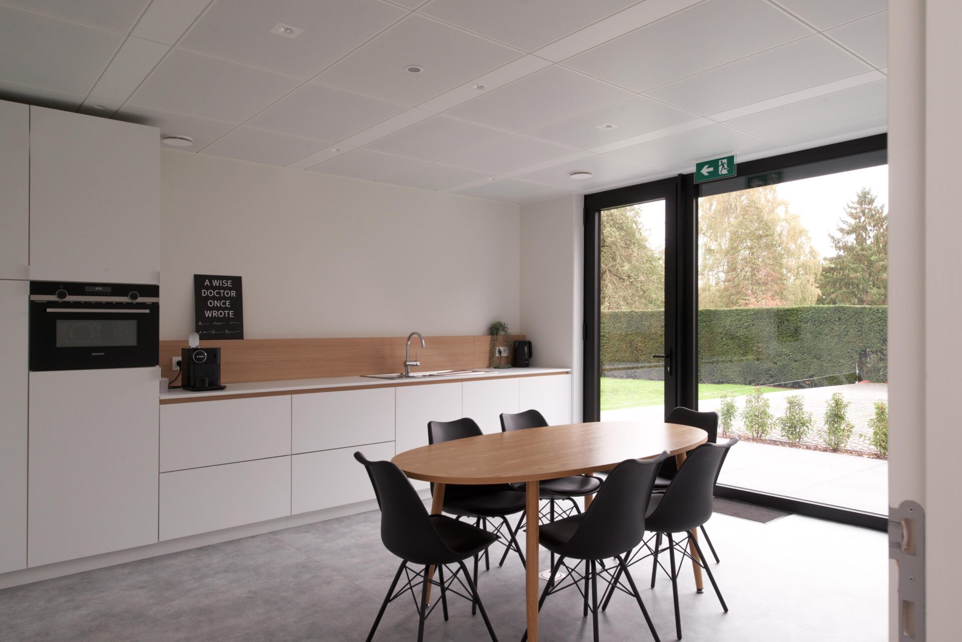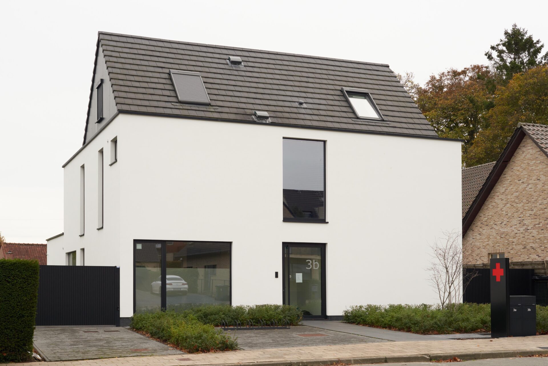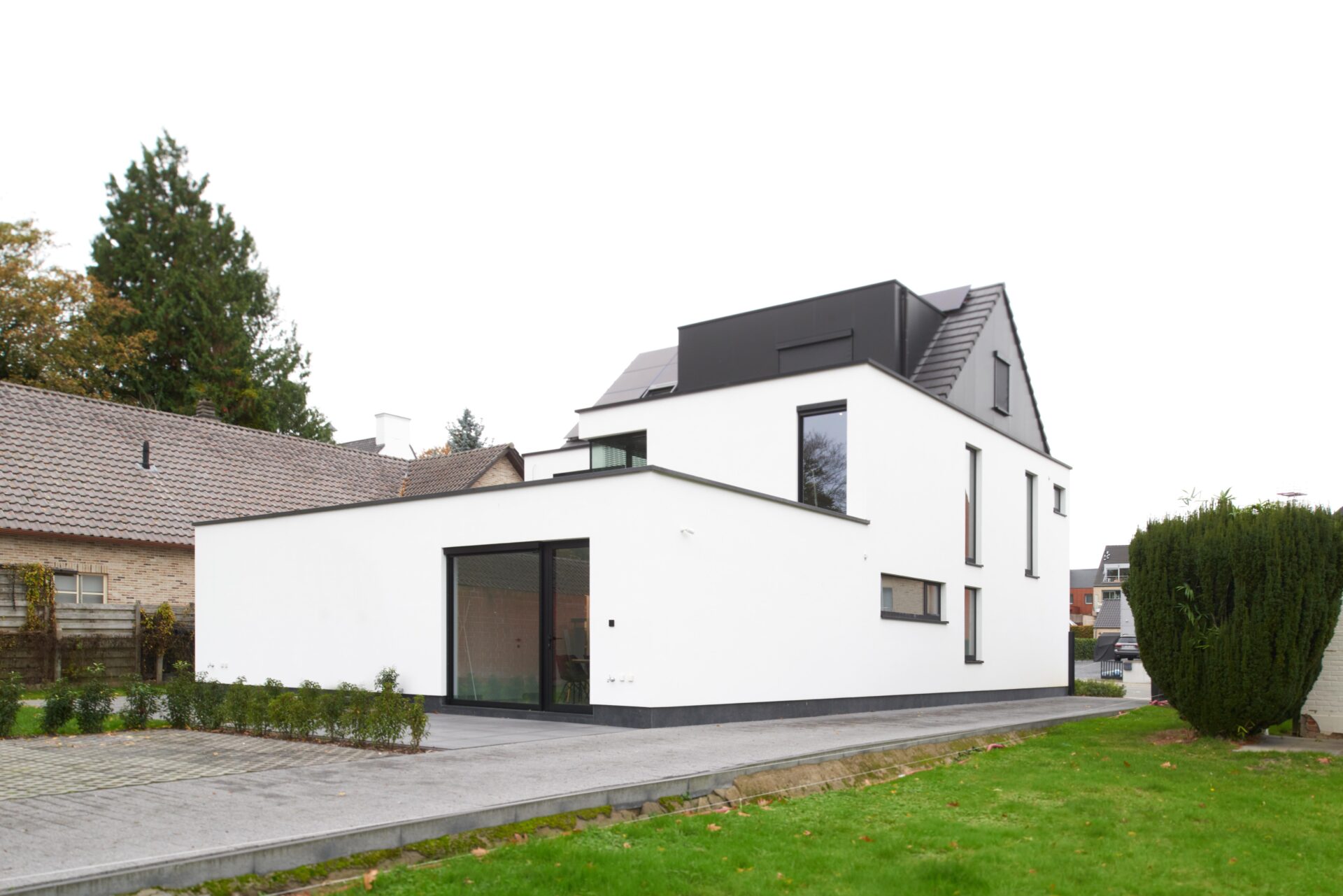 De strakke witte crepi geeft het geheel een tijdloze uitstraling.